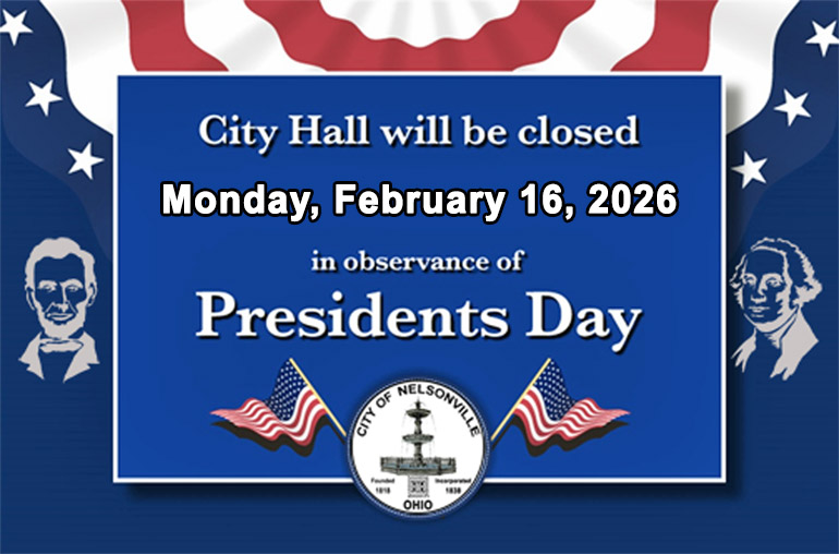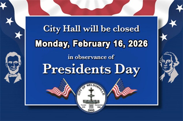 The Nelsonville City Council will hold a regular Council meeting on Monday, February 9, 2026, at 7:00PM in Council Chambers at City Hall.