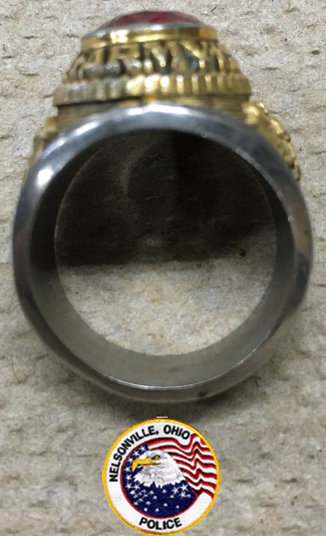 US Army ring found and turned into Nelsonville PD Sat, 8/19/17, to claim contact Nelsonville PD at 740-753-1736