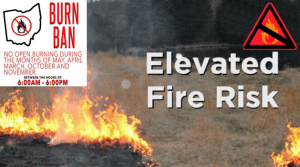 Open burning of any type is considered extremely dangerous at this time. Be careful of heat and sparks while operating any equipment and avoid smoking in wildland areas.