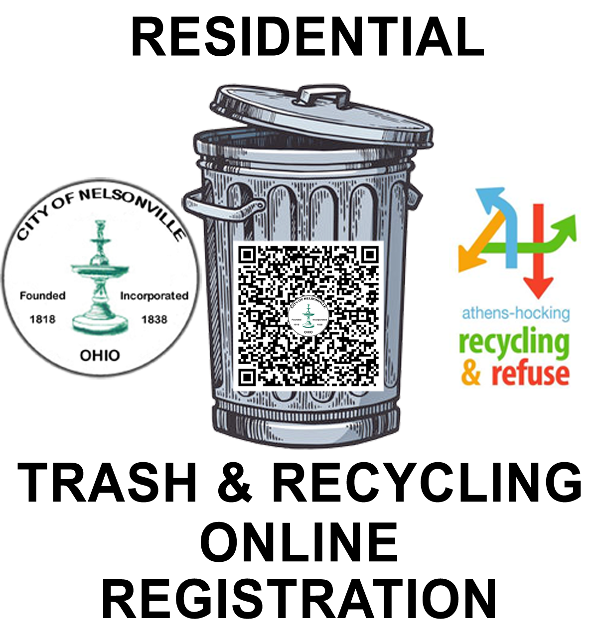 The City of Nelsonville is pleased to announce that starting on April 1, 2021 trash and recycling rates in the city will be $12.50 per month. Recycling will be at no additional cost if you sign up to receive recycling service. The trash and recycling hauler will be Athens Hocking Recycling and Refuse. All trash and recycling charges will be included on the Nelsonville resident’s utility bills. Nelsonville is no longer allowing trash and recycling trucks in the alleys. There will be no alley pickups after April 1, 2021 (limited exemptions will be granted per approval by the City Manager). All trash and recycling need to be placed curbside by 6 AM on scheduled pickup days. Large items are $5 per item and will need to be scheduled ahead of time for collection and marked with a sticker. Stickers can be obtained from the utility office.