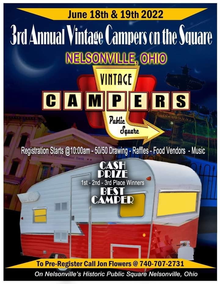 The Public Square is being closed for the 3rd Annual Vintage Campers on the Square being held in Nelsonville this weekend. Please watch for increased pedestrian traffic and use alternate routes to avoid the area.