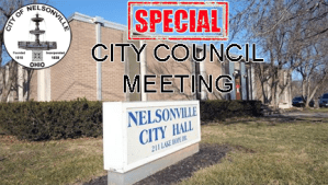 The Nelsonville City Council will hold a special meeting on Monday, January 30, 2023, at 7:00 PM, at City Hall. The purpose of the meeting is,