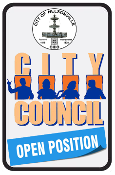 The City of Nelsonville is seeking people interested in filling one (1) open position for City Council member as soon as possible. To be considered for the City Council, the applicants must be a qualified elector who has been continuously a resident and a qualified elector of the City of one (1) year next prior to their election, and who is not the occupant of an incompatible office, shall be eligible to serve as a member of City Council. Each member of Council shall continue to be a resident and qualified elector of the City throughout their term of office, failing which Council shall remove them from office.