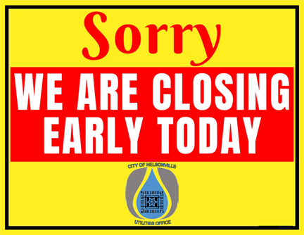 The City of Nelsonville Utilities Office will close at 1:00PM today Friday, September 1, 2023, due to employee illnesses. The office will reopen on Tuesday, September 5, 2023, for regular business hours. We apologize for any inconvenience this may cause and thank you for your understanding.