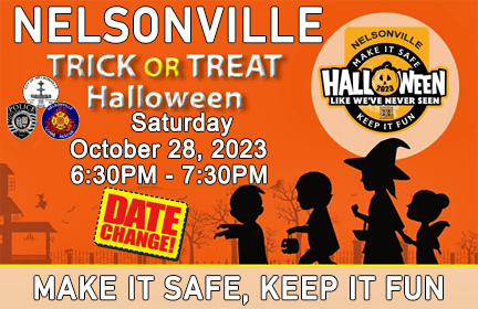 The City of Nelsonville announces that due to a scheduling conflict with a High School football play-off game on Friday, October 27th, Nelsonville Trick-Or-Treat; Beggar’s Night has been rescheduled to Saturday, October 28, 2023, from 6:30PM to 7:30PM. Drivers are urged to use extreme caution while driving in the Nelsonville area and watch out for children during these times.