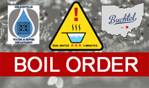 The Nelsonville Water Department has issued a boil order for all customers on State Route 78 from 1st Street to Bank Street, 1st Street, 2nd Street, 3rd Street, 4th Street, Wagner Street, Stephenson Street, Fork Street, Wilson Avenue, Emerson Street, South Akron Avenue from State Route 78 to Stephenson Street in Buchtel and Nelsonville Water customers only on Happy Hollow Road until 3:00PM, Friday, March 22, 2024. The boil order is due to a water main break.