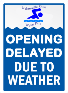 The City of Nelsonville announces that the city’s water park will delay its Wednesday, May 28, 2025 opening until 2:00PM, due to rain and cold weather.
