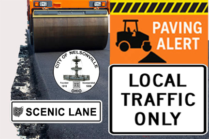 The City of Nelsonville announces that McKee paving will be working on Scenic Lane Tuesday, June 17th and Wednesday June 18th. McKee paving will be prepping the roadway on Tuesday and will pave the roadway on Wednesday. Local vehicle traffic will be maintained on Scenic Lane during the work. Please avoid this area and use an alternate route.