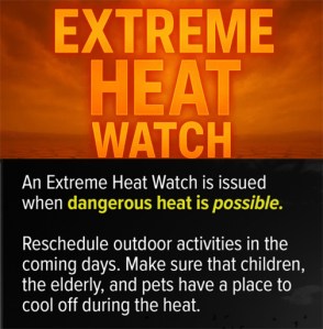 The National Weather Service has issued an Extreme Heat Watch for Athens County and surrounding areas in effect from 12:00 PM, Sunday, June 22, 2025, until 8:00 PM, Wednesday, June 25, 2025.