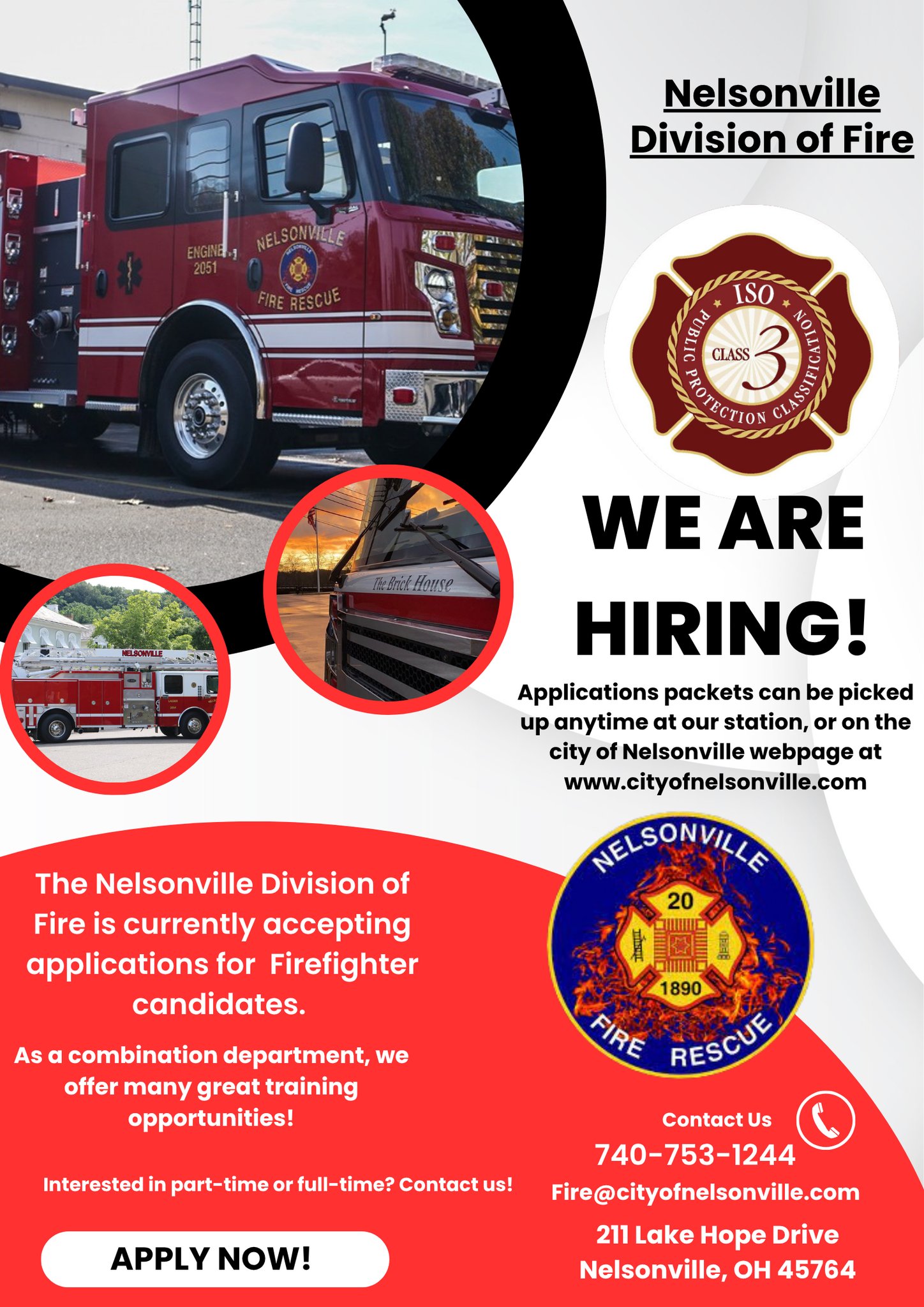 The City of Nelsonville Division of Fire is accepting applications to immediately fill open part-time positions and to build an eligibility list for future full-time and part-time hires.