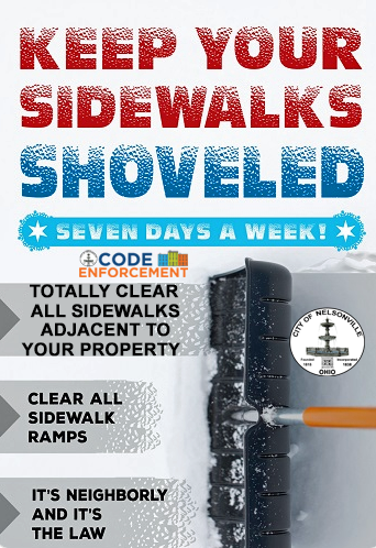 The City of Nelsonville Code Enforcement Office would like to remind Nelsonville residents of the City code that exist requiring the removal of snow and ice from sidewalks.