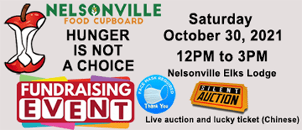 The Nelsonville Food Cupboard is holding a fund raiser event on October 30, 2021from 12:00PM until 3:00PM. The event will be held at the Nelsonville Elks Lodge. Face masks are required to be worn for entry.